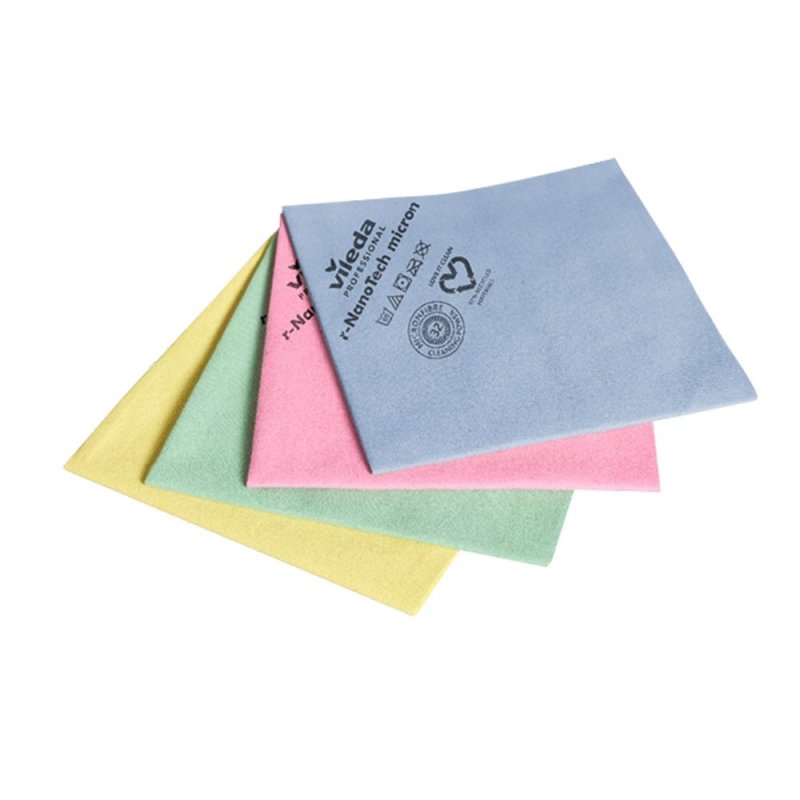 Lavette en microfibre non-tissée fabriquée à partir de 67% de plastique recyclé.