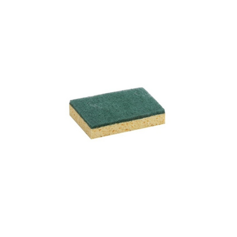 Ces produits de nettoyage multi-usages double fonction combinent une nappe non tissée à structure ouverte contenant des particules abrasives avec une éponge en cellulose pure, le tout laminé à l’aide d’une colle.