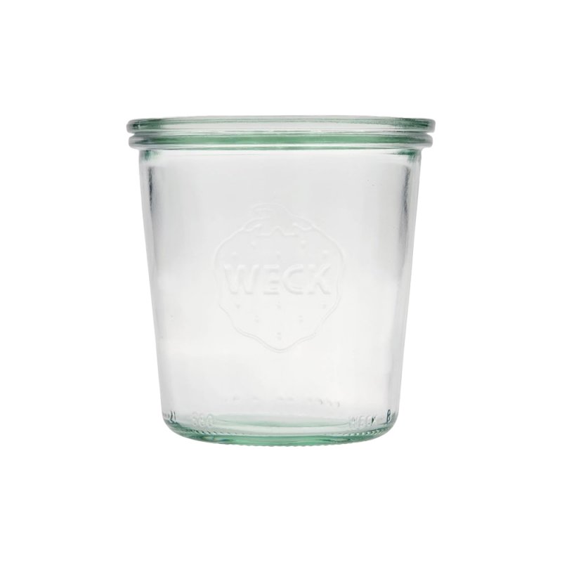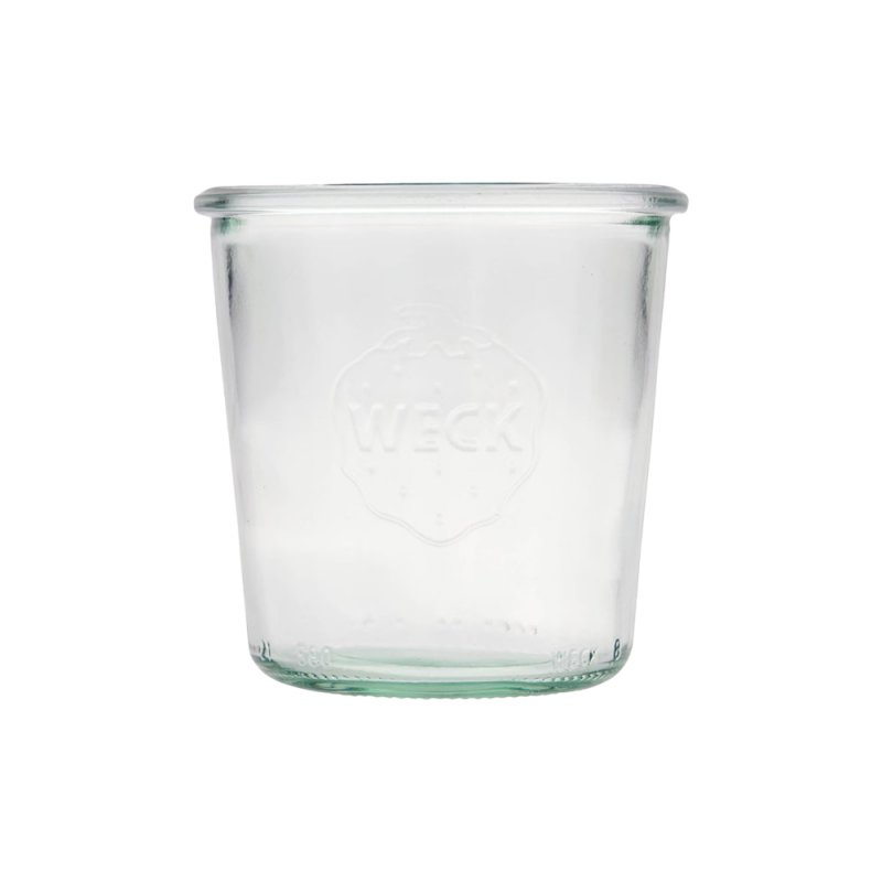 Le bocal en verre WECK® d'une contenance de 580ml avec couvercles et joints de diamètre 100 mm (clips non inclus) est idéal pour conserver des légumes ou assurer le renversement des petits gâteaux et des desserts au pudding grâce à sa forme cylindrique.