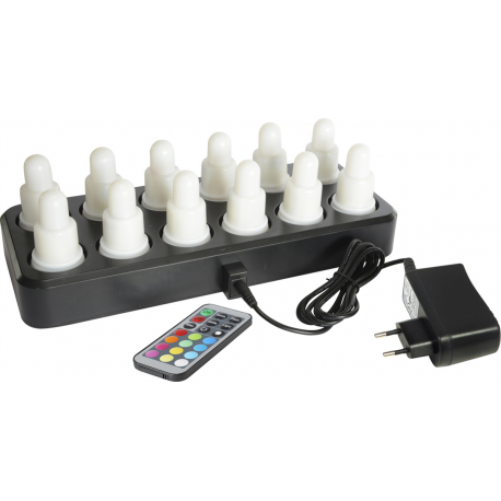 | 12 bougies à LED rechargeables multicolores avec chargeur, adaptateur et télécommande - Autonomie 13h et charge 8h - 1 pc | 171486 | 150,50 € | 1 | | |
