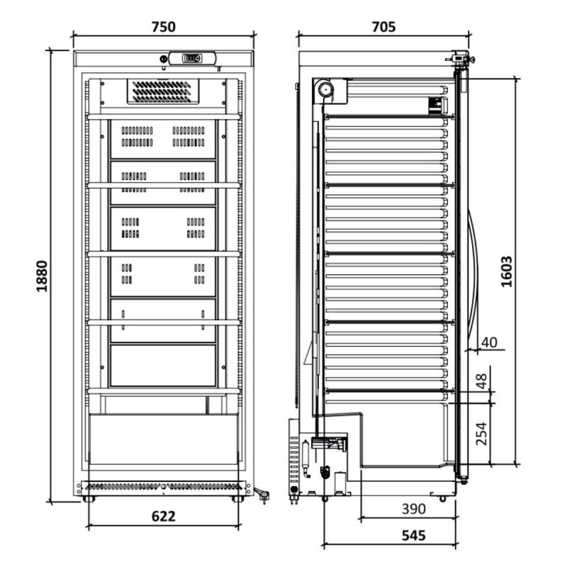 | Titre | Armoire à vin mono-température - Gamme service - Skinplate noir - Froid ventilé - Porte verre réversible - LED |
