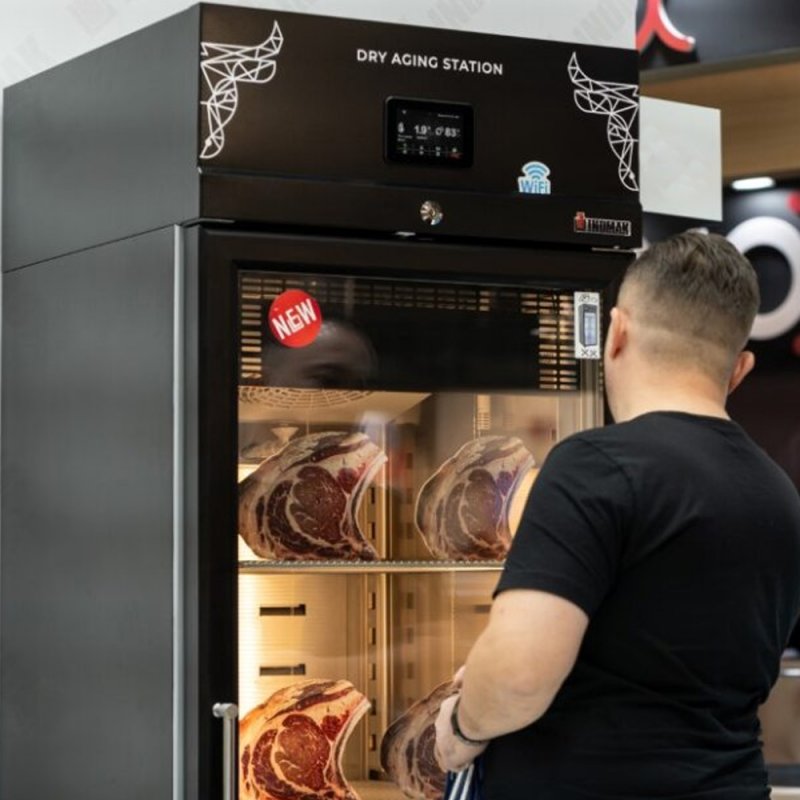 Armoire de maturation de la viande spécialement conçue pour créer la température, l'humidité et le flux d'air appropriés pour contribuer au processus de maturation à sec, afin d'obtenir la texture et la saveur distinctives de la viande affinée.