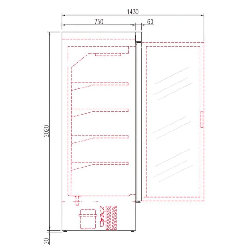Elle est équipée de 4 + 4 étagères en acier laqué blanc, réglables en hauteur, et livrées avec porte-étiquettes pour une organisation optimale. Le rideau d'air sur toute la hauteur à l'intérieur de l'armoire, en partie arrière, renforce l'efficacité énergétique. L'évaporateur ventilé est traité anti-corrosion, garantissant une durabilité accrue. Le dégivrage automatique avec évaporation automatique simplifie l'entretien, tandis que le thermostat électronique à affichage digital permet un contrôle précis de la température.