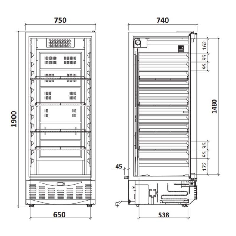 - Étagères amovibles en acier plastifié : 4 GN 2/1 (650x530mm)