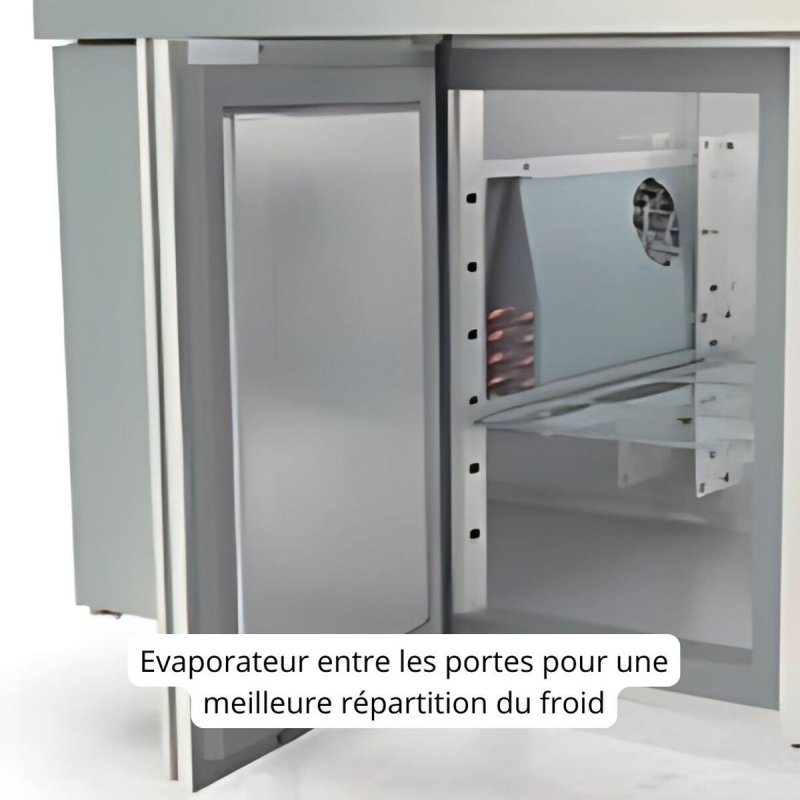 | Titre | Meuble de préparation positif 700 - T° 0°/+8°C - 2 portes - Capacité 265L - Inox AISI-304 - Éco-énergie |