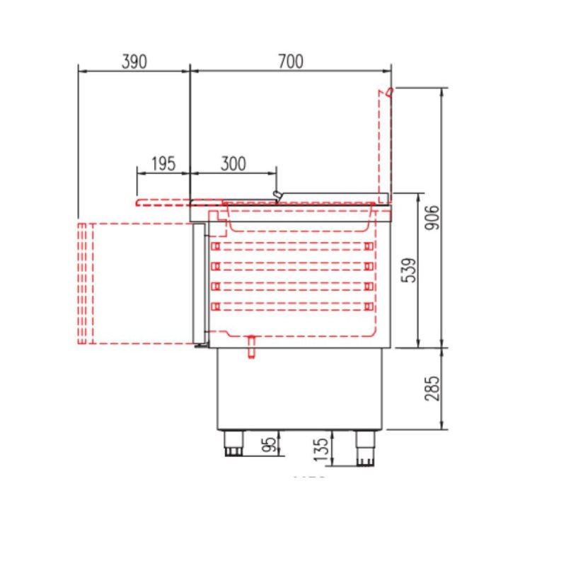 - Capacité bacs : 18 bacs GN1/6 prof. 200 et 6 bacs GN1/9 prof. 100