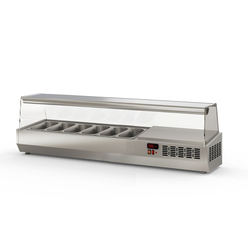 | Titre | Présentoir à ingrédients 1/4 - Inox 18/10 - 6 bacs GN 1/4 - Thermostat digital - Économie d'énergie - T°+2°/+8°C |