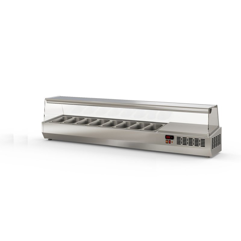 | Titre | Présentoir à ingrédients 1/4 - Inox 18/10 - 8 bacs GN 1/4 - Thermostat digital - Économie d'énergie - Alarme T° |
