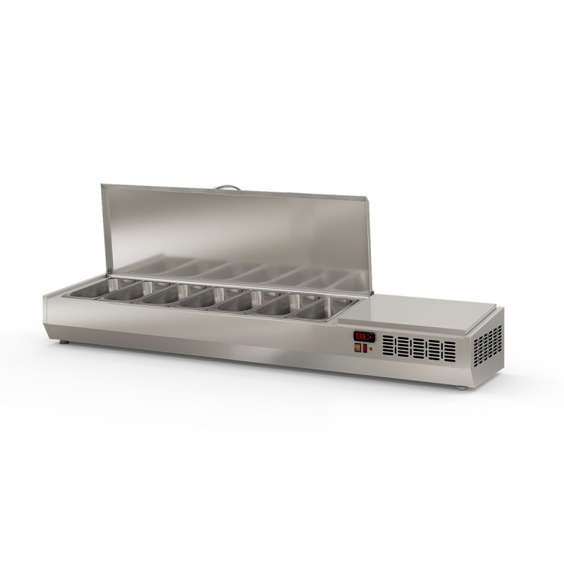 | Titre | Présentoir à ingrédients 1/3 - Inox 18/10 - 7 bacs GN 1/3 - Thermostat digital - Économie d'énergie - Temp. +2°/+8°C |