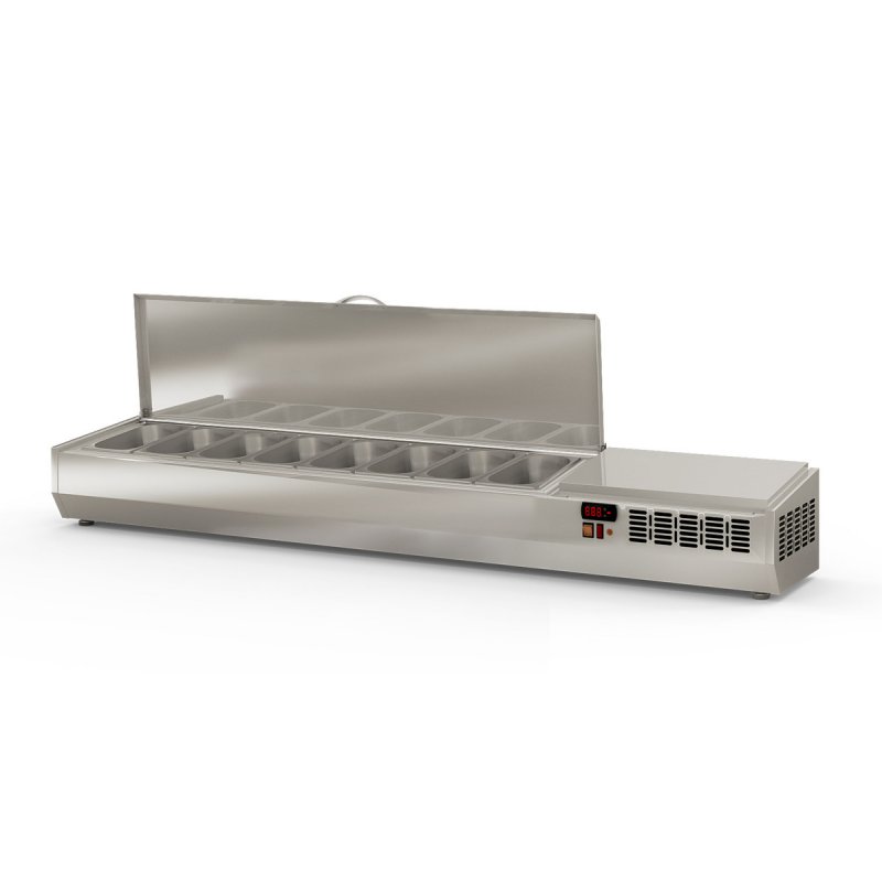 | Titre | Présentoir à ingrédients 1/4 - Inox 18/10 - 8 bacs GN 1/4 - Thermostat digital - Économie d'énergie - Alarme T° |