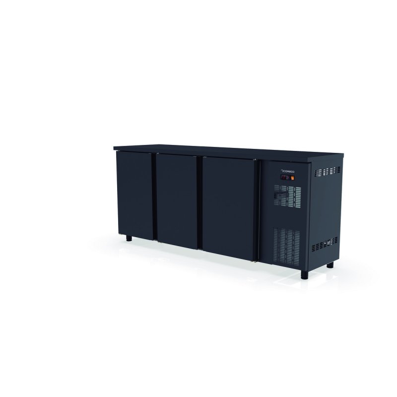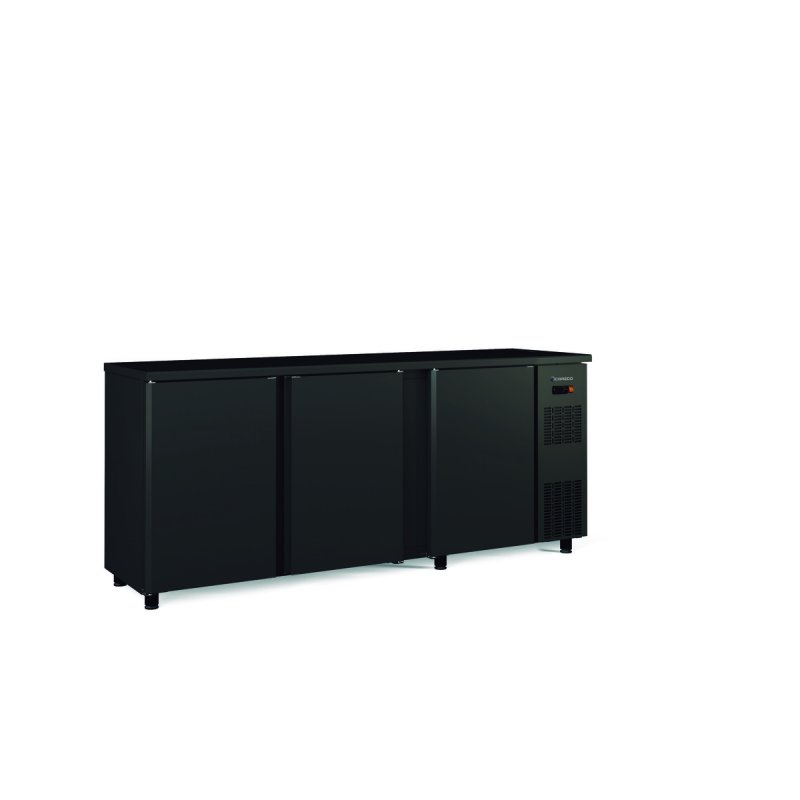 | Titre | Arrière bar 3P - T°+2°/+8°C - 500 bouteilles - 490l - Acier noir - LED - Serrure - Thermostat digital - H 820 mm |