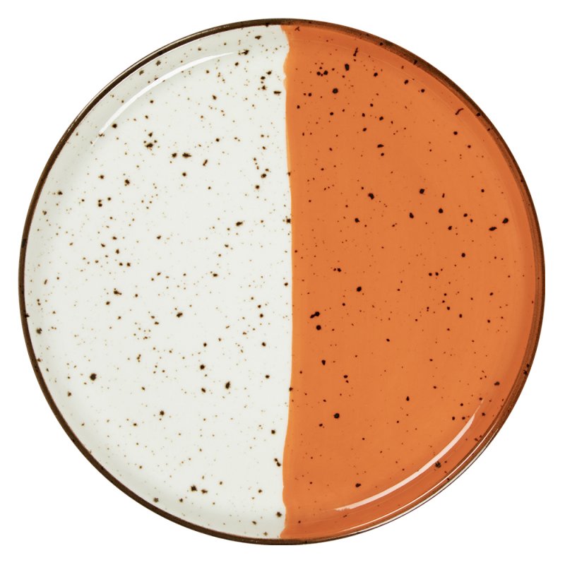 Cette assiette plate à bord droit (Ø. 27cm) de la collection HELIOS est fabriquée en porcelaine avec un décor Artistic glazes. Ce dernier peut varier d'une pièce à l'autre.