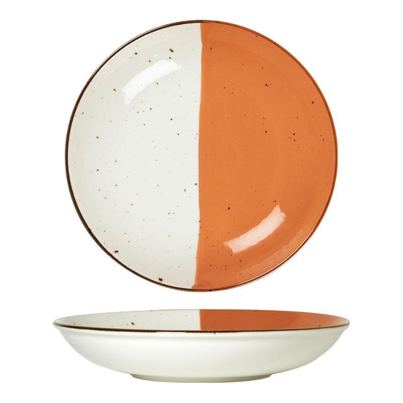 | Titre | Assiette creuse - Porcelaine ø 25 cm - Hélios - Blanc, Ivoire et orange |