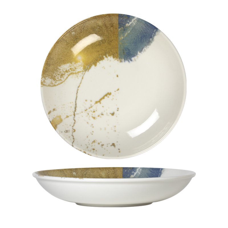 | Titre | Assiette creuse - Porcelaine ø 25cm - Dionysos - Blanc, bleu et or |