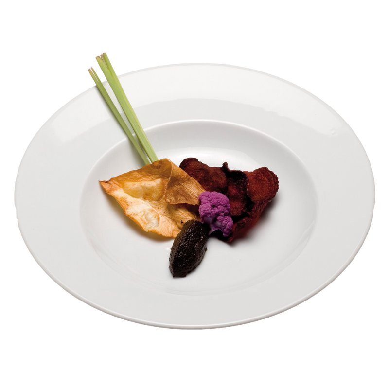 Découvrez l'assiette creuse Symetric de 23 cm en porcelaine, l'élégance à l'état pur pour sublimer vos créations culinaires.