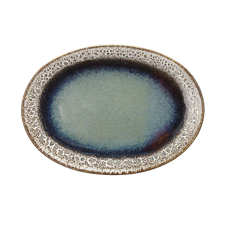 | Titre | Assiette ovale 30x21 cm Bloom - Porcelaine- Bleu / Marron |