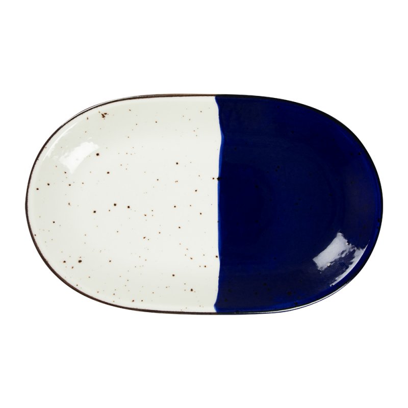 | Titre | Assiette ovale - Porcelaine 32x20 cm - Poséidon - Sans aile - Blanc, Ivoire et bleu |