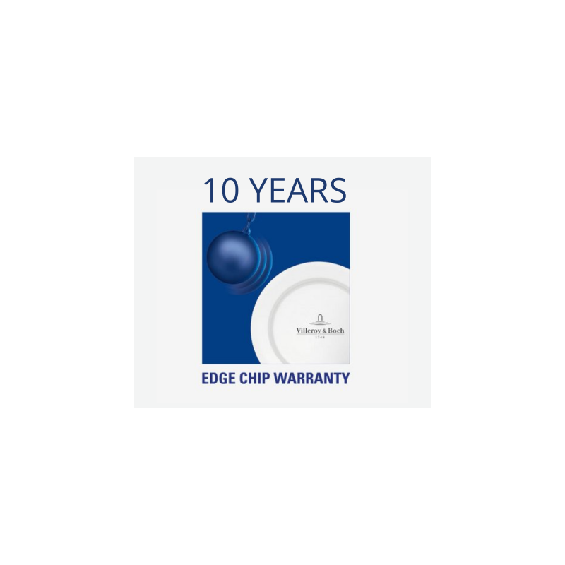 La haute qualité associée au choix des matières premières utilisées dans la fabrication des produits Villeroy & Boch Hôtel & Restaurant confère à la porcelaine une plus grande résistance aux sollicitations mécaniques externes que la plupart des autres porcelaines. Entreprise allemande présente dans le monde entier, Villeroy & Boch AG est donc en mesure d‘accorder une garantie anti-ébréchures sur les séries de vaisselle de la gamme Hôtel & Restaurant pendant 10 ans.