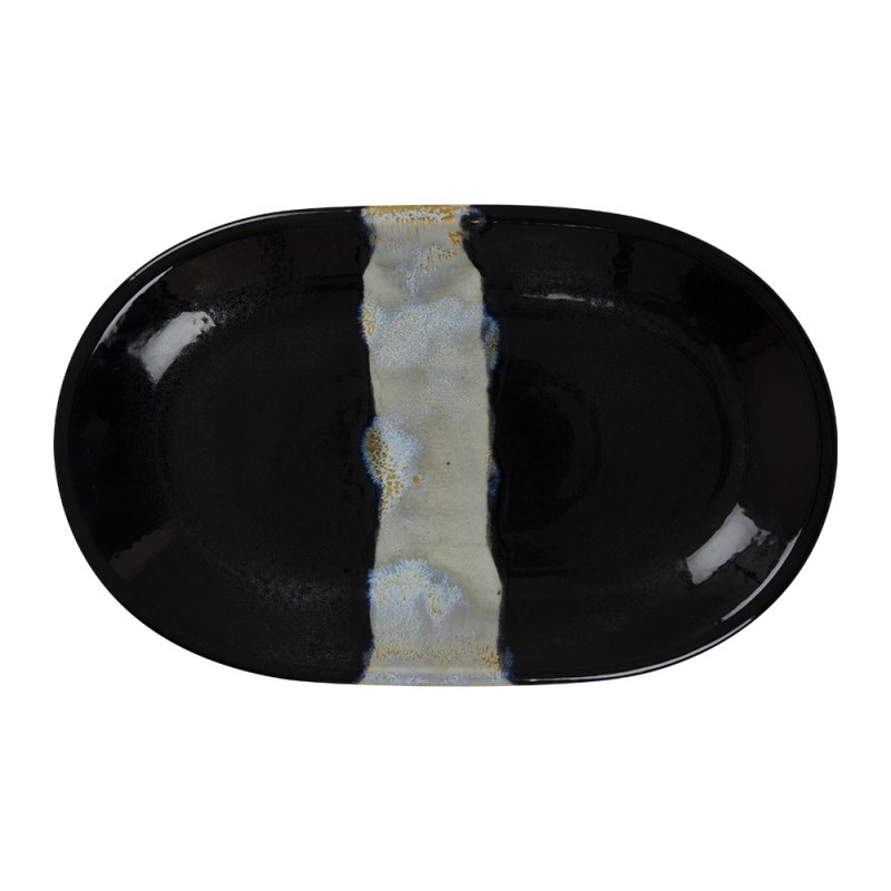 | Titre | Assiette plate ovale - Porcelaine 32x20 cm - Circé - Sans aile - Noir et nacre |