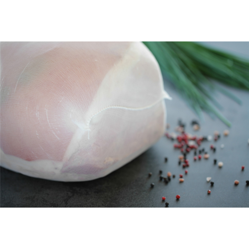 Bas tubulaire en fibre de polyamide, utilisé pour la cuisson du jambon blanc.