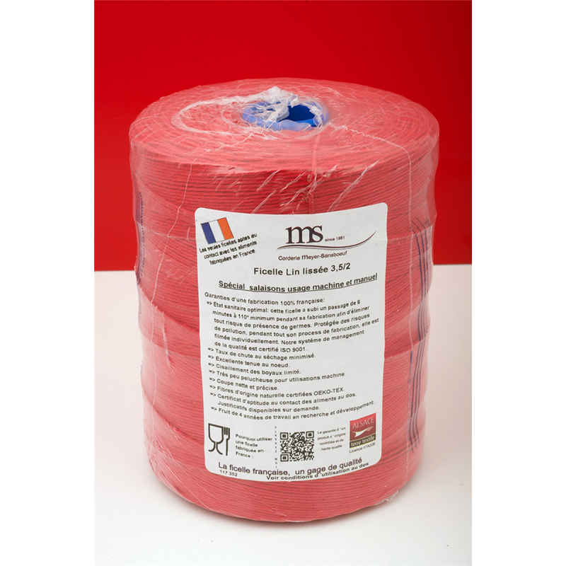 Ficelle à rôti rouge en lin lissé, pour une température d'utilisation allant de -40 à +100°C. 2 brins - Rouleau de 1 kg - ø...