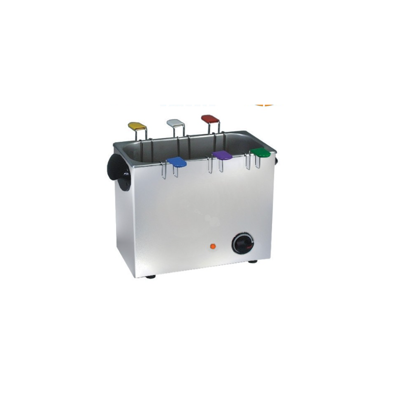 Le cuiseur à œufs professionnel est équipé de paniers en inox de 310 mm, d'une construction entièrement en inox AISI 430 et d'un thermostat. La hauteur totale de cet équipement professionnel avec les paniers atteint 310 mm, avec des poignées intégrées et des pieds antidérapants pour une utilisation sûre et pratique.
