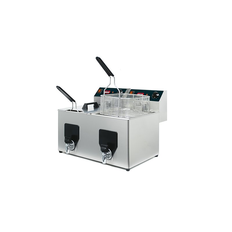 | Titre | Friteuse à poser avec robinet 8+8L - cuve 10+10L - 13+13 kg/h - 7 kW - 525x475x375 mm |