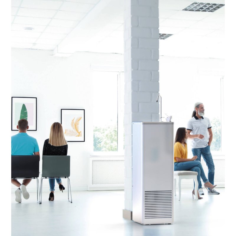 | Titre | Fontaine RIVER - Eau froide 20L/h - Banc de glace - Gris métal - Cuvette inox |