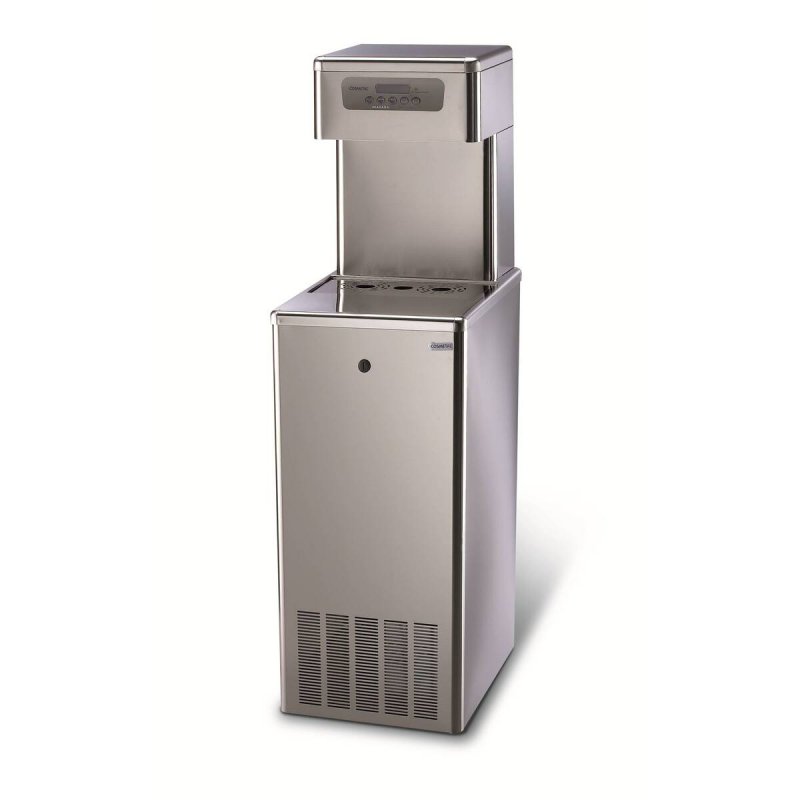 Il se distingue par son débit continu de 12 L et un débit horaire de 55 L, idéal pour les établissements à forte fréquentation. Avec deux sorties d'eau réfrigérée réglables entre 3° et 10°C, il s'adapte à toutes les préférences. L'option d'eau ambiante offre une flexibilité supplémentaire. Le panneau de commande intuitif à trois positions (continu, intermittent, stop) facilite l'utilisation quotidienne. La sécurité est renforcée par une électrovanne qui prévient toute fuite d'eau, assurant ainsi une tranquillité d'esprit totale.