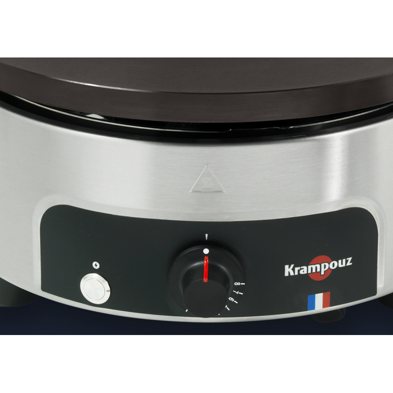 Culotter l’appareil avant première utilisation pour protéger la plaque traditionnelle en fonte usinée et lui conférer ses propriétés antiadhésives. Retrouvez nos conseils pour le culottage de votre crêpière en suivant ce lien: https://www. krampouz. com/conseils_krampouz/quest-ce-que-le-culottage-de-la-crepiere-et-comment-le-reussir/
