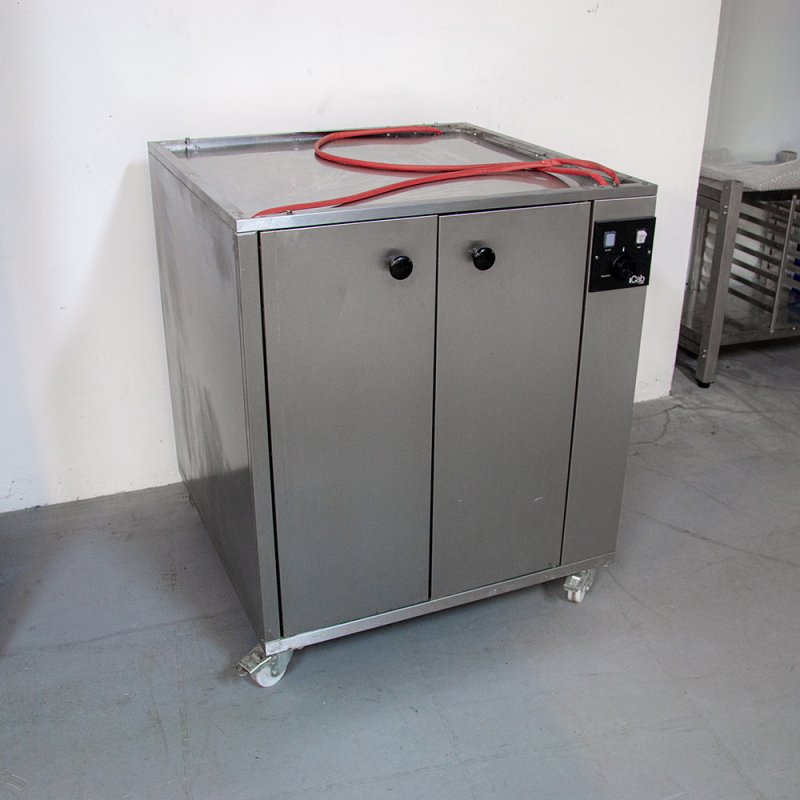 Après avoir été préparés à l’avance et figés par le froid, les pâtons sont transférés dans cette étuve afin de favoriser leur levée et de les ramener à une température idéale avant d’entrer dans le processus de cuisson.