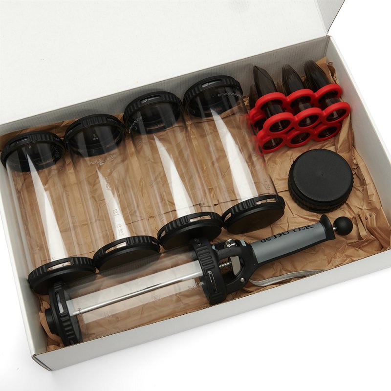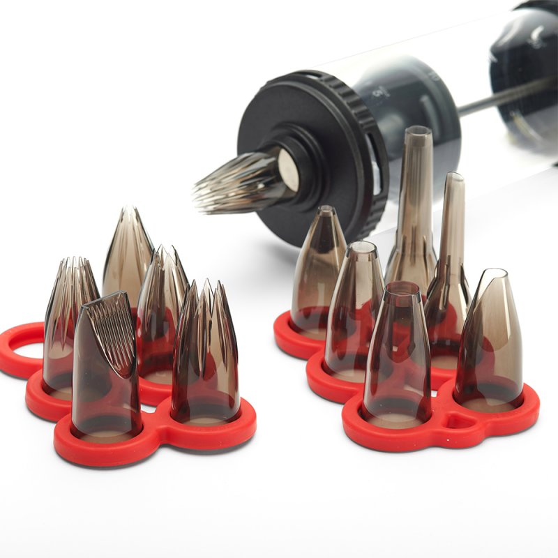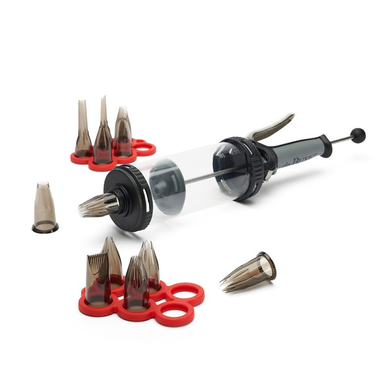 Découvrez notre Coffret Tube Pro, un piston à pression ayant les mêmes usages que les poches : remplir, garnir, décorer, mais avec l'avantage de pouvoir doser.
