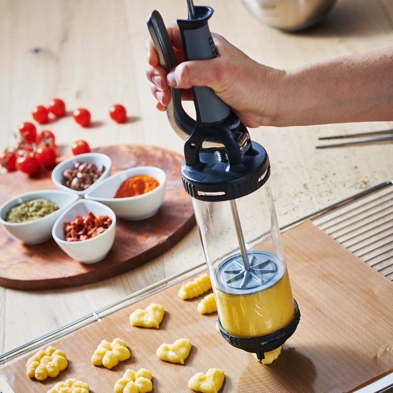 Il est idéal avec les préparations épaisses comme les crèmes, les mousses épaisses, pâtes à choux…