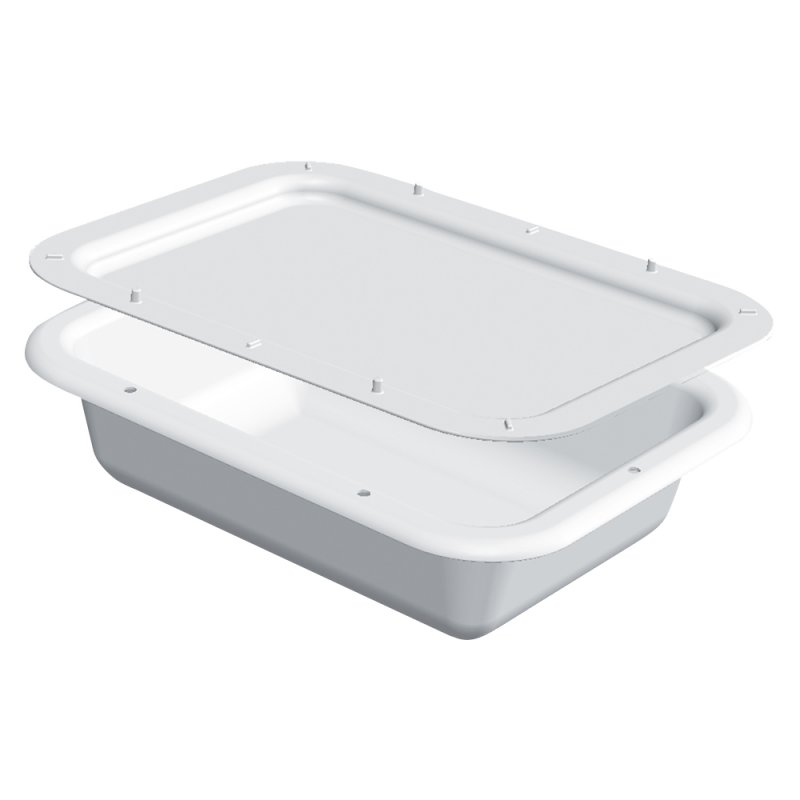 Le bac dispose d'angles arrondis et d'aucune zone de rétention pour une grande facilité de nettoyage et une hygiène parfaite, adaptée aux normes en vigueur.