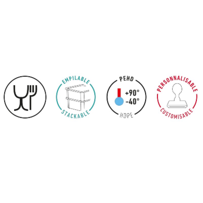 Empilable avec et sans couvercle, elle dispose d'une grande capacité d'empilement en hauteur pour un gain de place important.