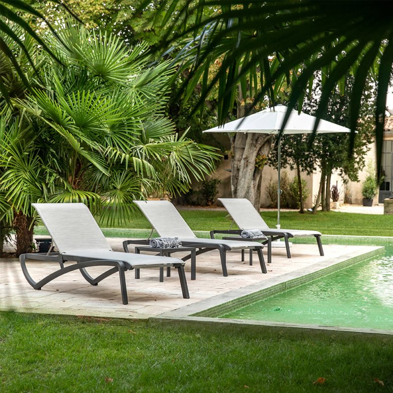 Le bain de soleil SUNSET s’impose avec élégance et raffinement en bord de piscine, sur la plage ou dans un spa !