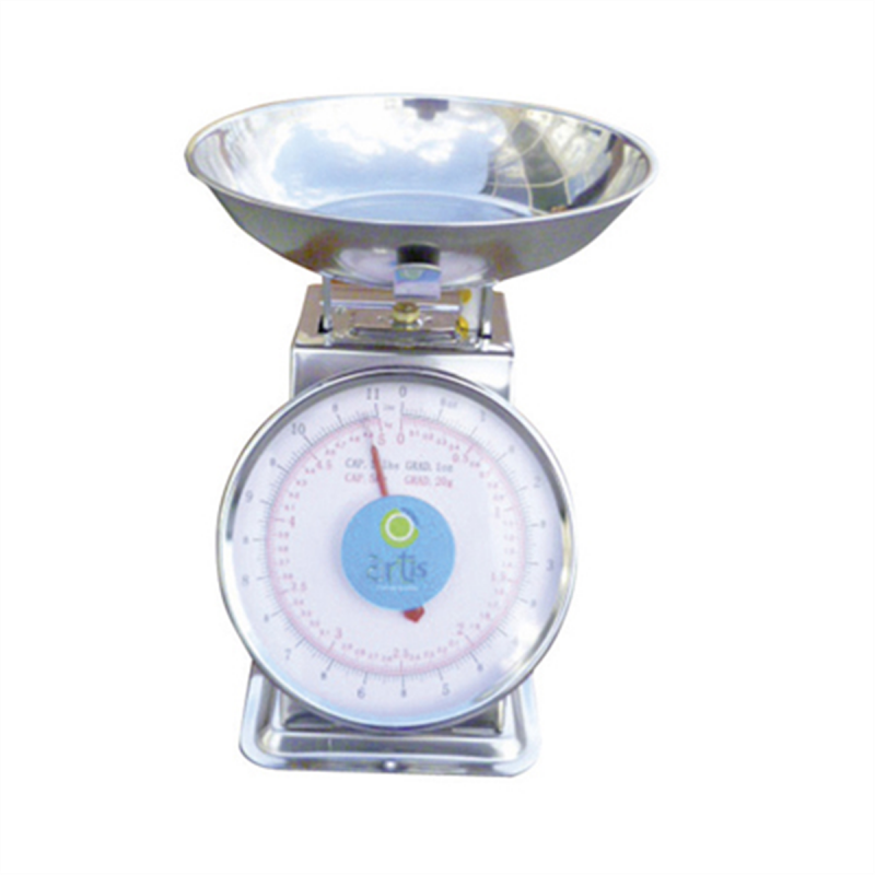 Balance de préparation mécanique à ressort pour peser de 20 g à 10 Kg. Le panier de la balance mesure 200 mm de diamètre.