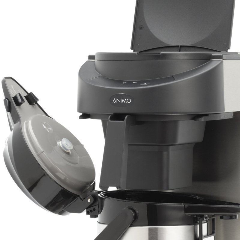 Avec les cafetières MT-line, vous pouvez facilement et rapidement préparer du café filtre frais directement dans un thermos (à pompe). Ces cafetières d’Animo sont disponibles avec un remplissage manuel ou un raccordement d’eau fixe. Des cafetières avec une bouilloire supplémentaire pour le thé font également partie des options.