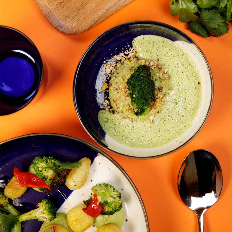 Son design raffiné associe une partie ivoire claire et une partie bleue foncée pour des tables élégantes !