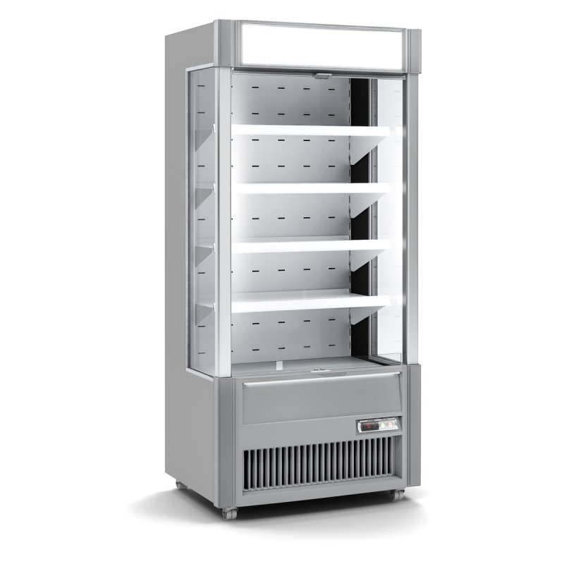 Elle est équipée d'un contrôle digital de la température pour une gestion précise et efficace. L'évaporateur et le condenseur ventilés assurent une répartition homogène du froid, tandis que l'évaporation automatique des eaux de dégivrage simplifie l'entretien. L'éclairage intérieur LED, à la fois horizontal et vertical, met en valeur vos produits, même dans les environnements les plus sombres. De plus, le rideau de nuit intégré permet de réaliser des économies d'énergie en dehors des heures d'ouverture.