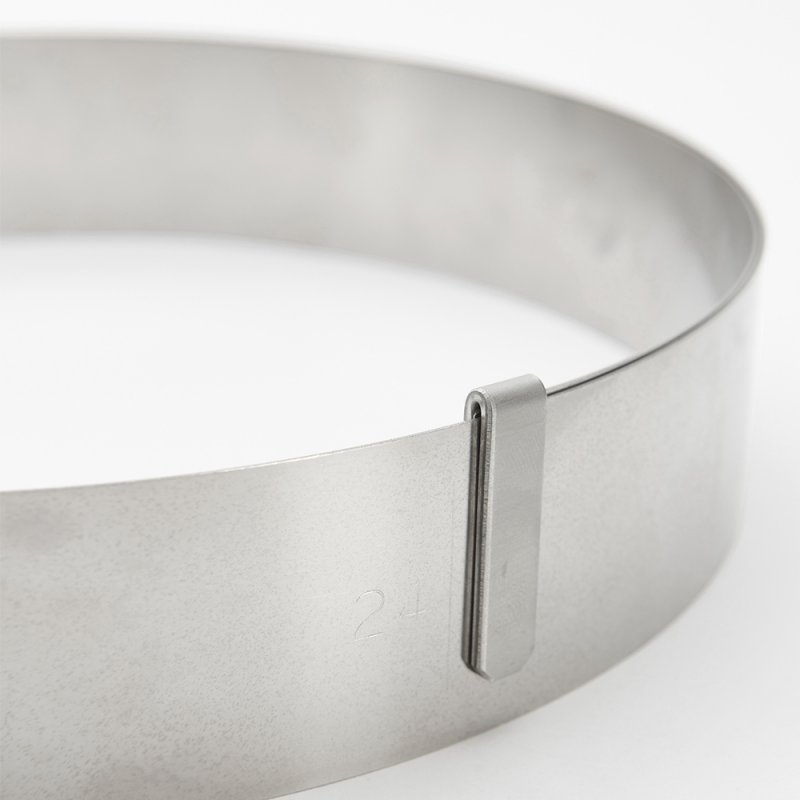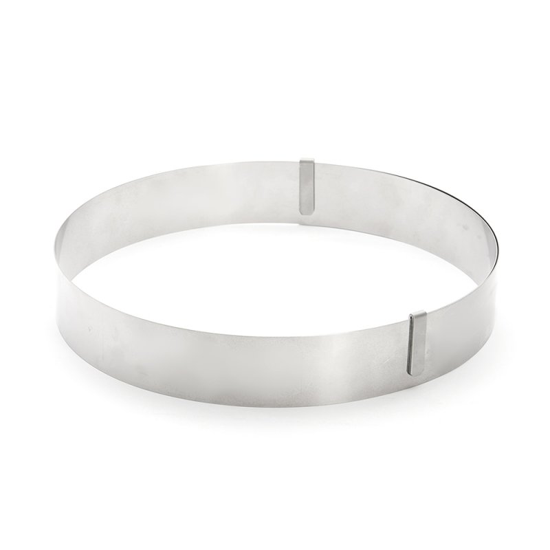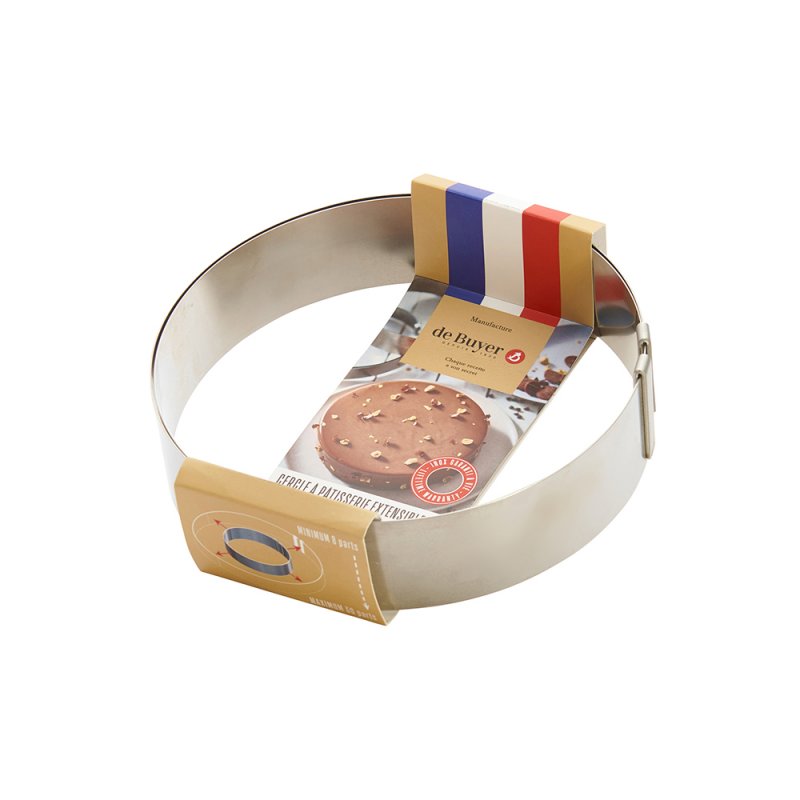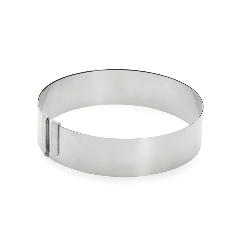 Le cercle inox extensible Ø18 à 36 cm Ht. 4, 5 cm est idéal pour le montage d’entremets, tarte ou tourte.