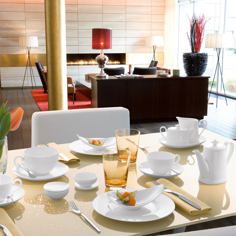Du petit-déjeuner au dîner, du déjeuner au café, l’extrême raffinement de la porcelaine Premium Bone se révèle à toute heure de la journée !