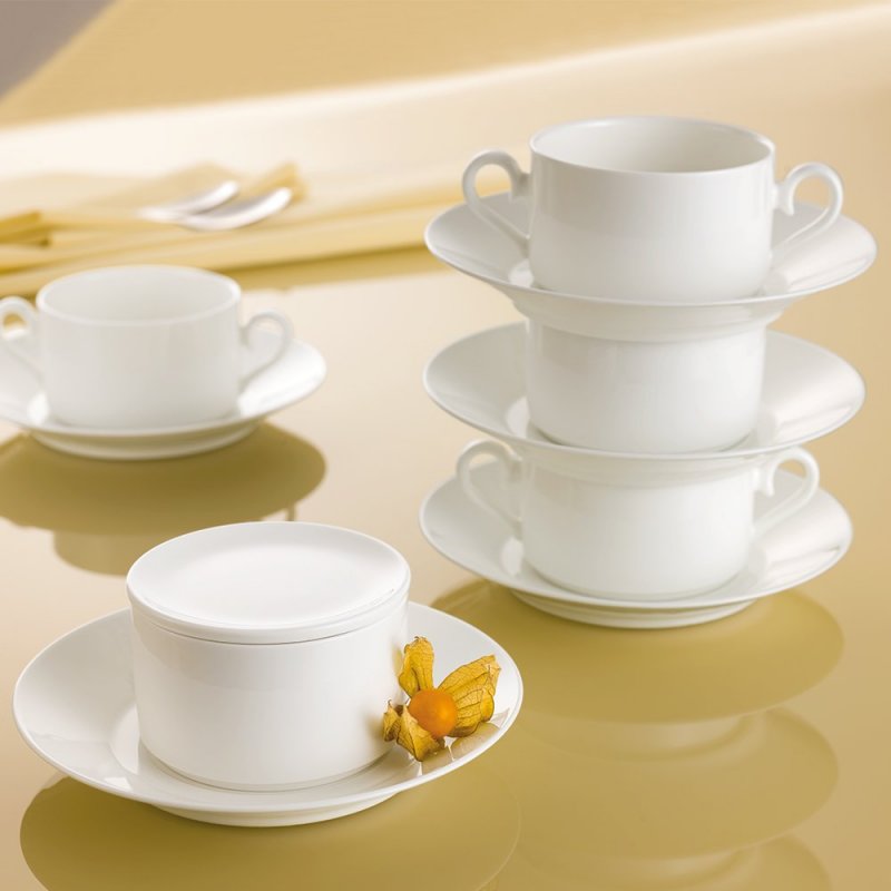 Du petit-déjeuner au dîner, du déjeuner au café, l’extrême raffinement de la porcelaine Premium Bone se révèle à toute heure de la journée !