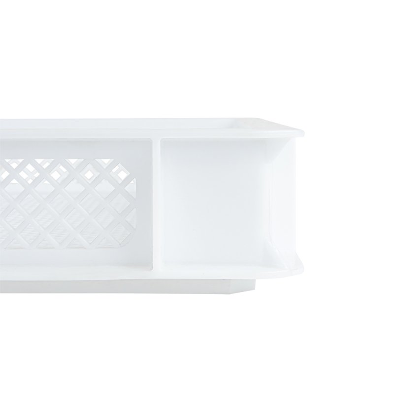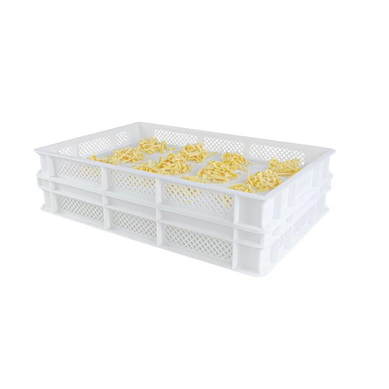 Cette caisse est parfaitement adaptée pour le stockage d'aliments de petite taille : les ajourages très fins (5 x 5 mm) ne laissent pas passer les aliments tout en leur permettant de s'égoutter et de sécher facilement.