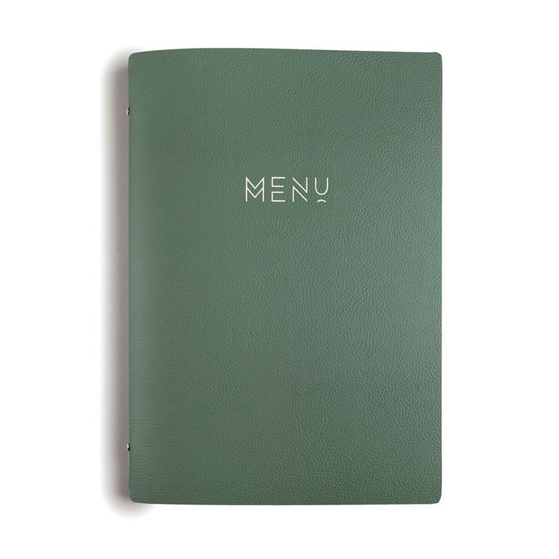 Découvrez notre porte-menu format A4 en simili cuir vert élégant, dimensions 25, 5x32 cm, idéal pour les professionnels de l'hôtellerie et de la restauration.
