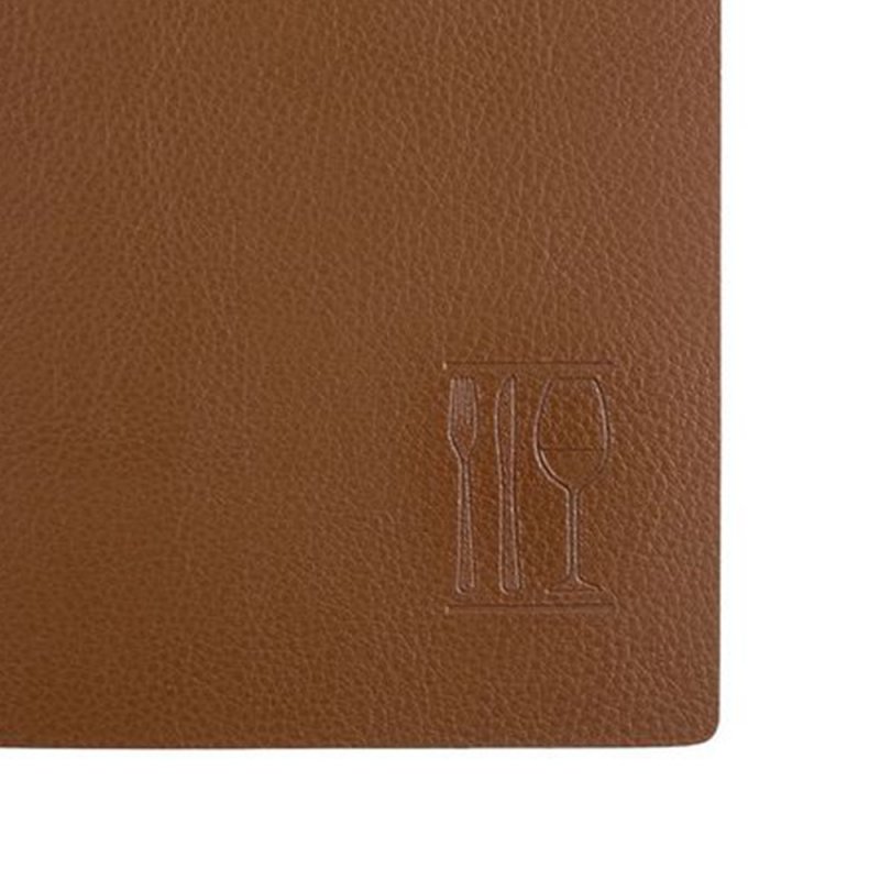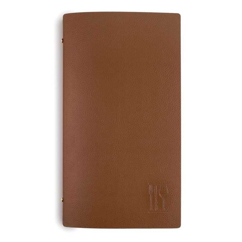 Découvrez notre porte-menu Simone marron spécial vin fabriqué en cuir 100% recyclé, dimensions 18x28, 5 cm, idéal pour les professionnels de l'hôtellerie et de la restauration.