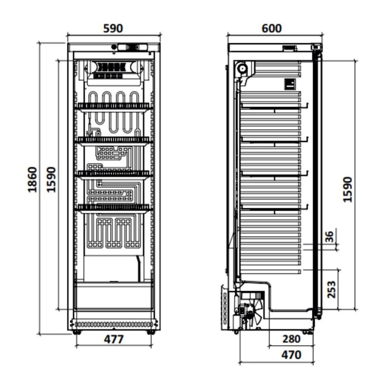 - Dimensions intérieures : 477 x 470 x 1590 mm