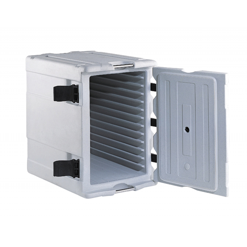 Ce conteneur isotherme professionnel dispose d'une fermeture en acier inoxydable et de poignées rétractables. Cet équipement professionnel est également conçu pour être empilable. Idéal pour le transport d'aliments à température contrôlée, que ce soit en liaison fraîche, chaude ou réfrigérée, il garantit également le respect de la "chaîne du froid" pour le transport de denrées périssables.
