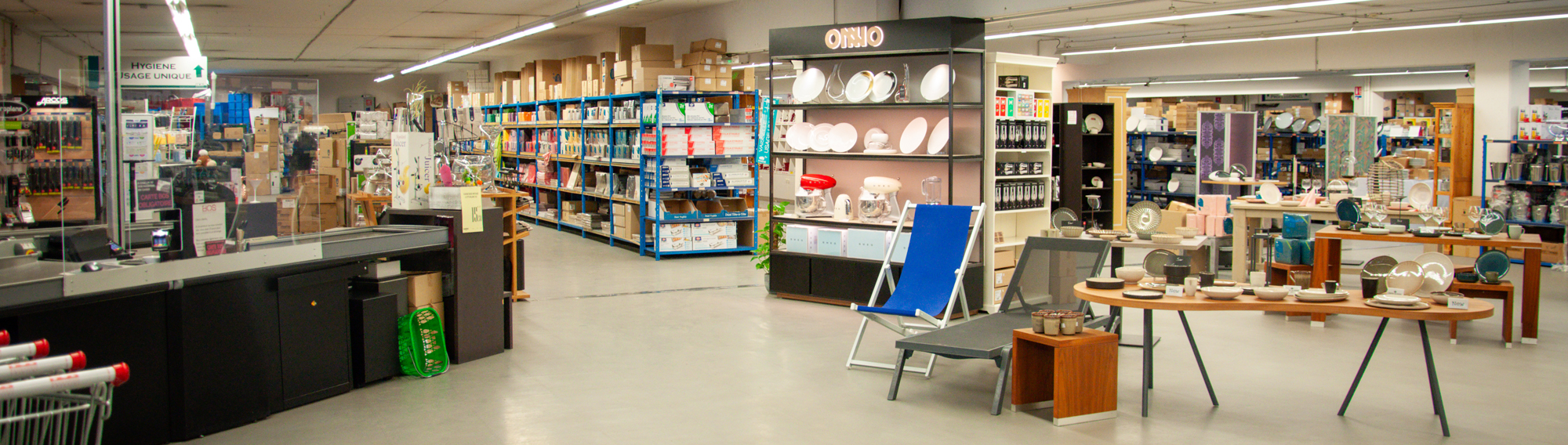 Il vous propose un large choix de produits en arts de la table, batterie de cuisine, hygiène, textile, linge de lit et linge éponge.