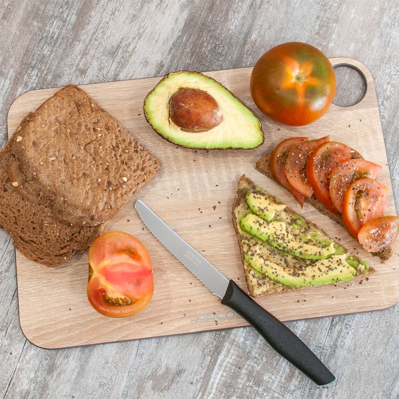 Le couteau de table cranté avec manche en polypropylène et lame de 11 cm de couleur noire d'Arcos est idéal pour les...